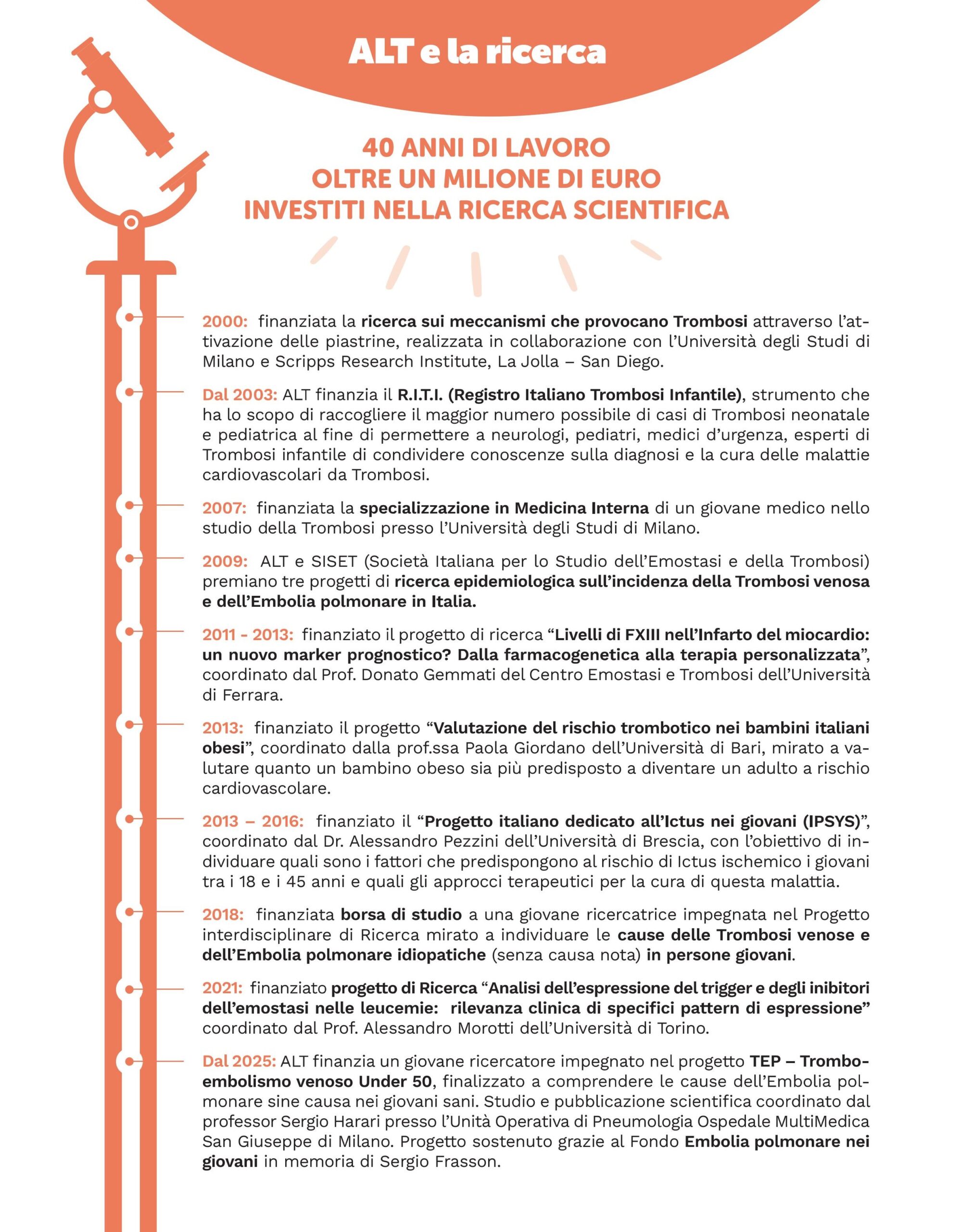 Progetto di Ricerca Scientifica finalizzato a comprendere le cause dell’Embolia polmonare sine causa nei giovani sani, in assenza di evidenti fattori di rischio predisponenti come deficit di coagulazione, tumori, infezioni, ecc… Studio coordinato dal Professore Sergio Harari presso l’Unità Operativa di Pneumologia Ospedale MultiMedica San Giuseppe, finanziato grazie al “Fondo Embolia Polmonare nei giovani, in memoria di Sergio Frasson”.